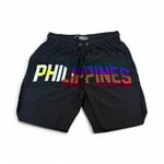 Black nylon shorts with fully embroidered Philippines Flag logo. Back zipper pocket with Cultured Roots logo.